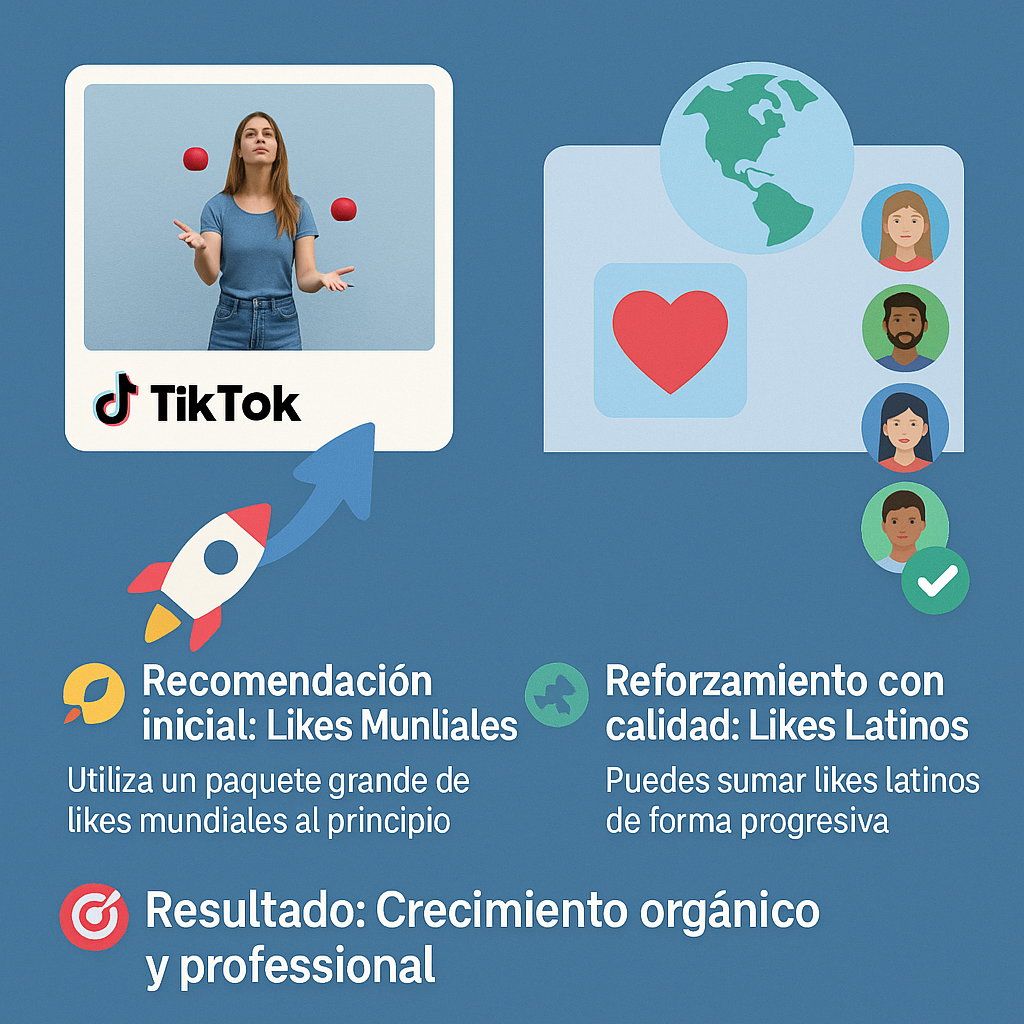Utiliza un paquete grande de likes mundiales al principio. Son más económicos, se entregan en minutos y generan el impacto visual necesario para atraer nuevos usuarios rápidamente. Perfectos para influencers, marcas personales o empresas que quieren volumen inmediato.